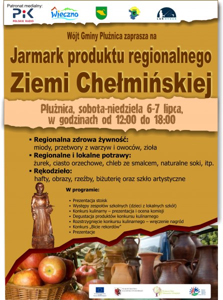 Rękodzielnicy pokażą szkło artystyczne, obrazy, rzeźby, biżuterię i hafty. Będzie można zdegustować potrawy zgłoszone do kulinarnych konkursów, obejrzeć występy zespołów dziecięcych z lokalnych szkół, posłuchać prelekcji nt. walorów produktów regionalnych, wziąć udział w biciu rekordów obierania ziemniaków czy szatkowania kapusty. Wszystkich chętnych zapraszamy do Płużnicy.