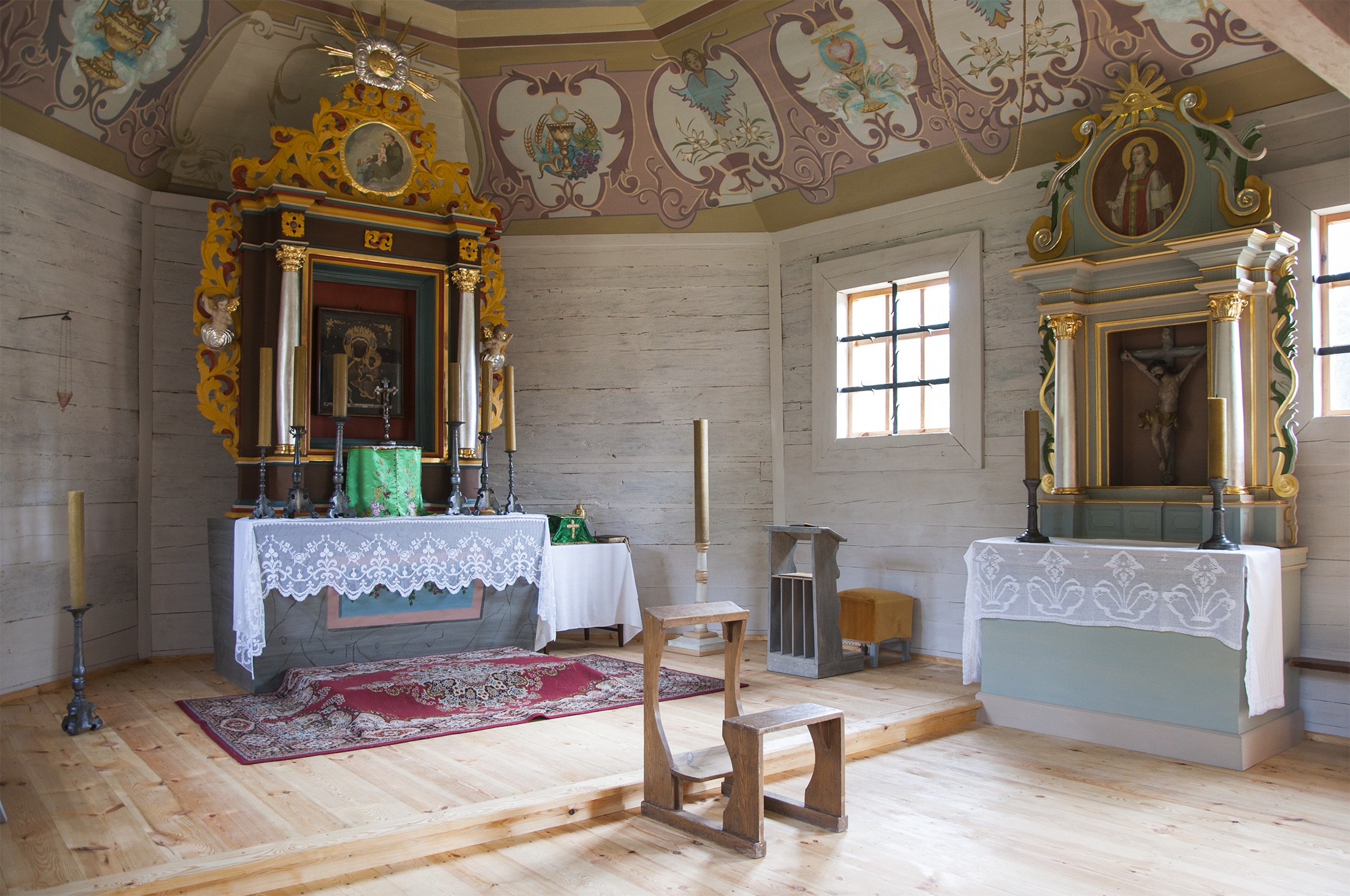 Wyposażenie i wystrój wnętrza pochodzą sprzed Soboru Watykańskiego II (1965 r.), gdy mszę odprawiano w rycie trydenckim, po łacinie, a kapłan, tak jak wierni, stał przodem do ołtarza.